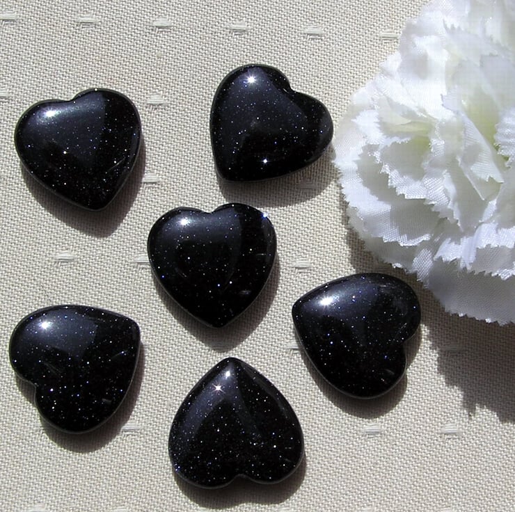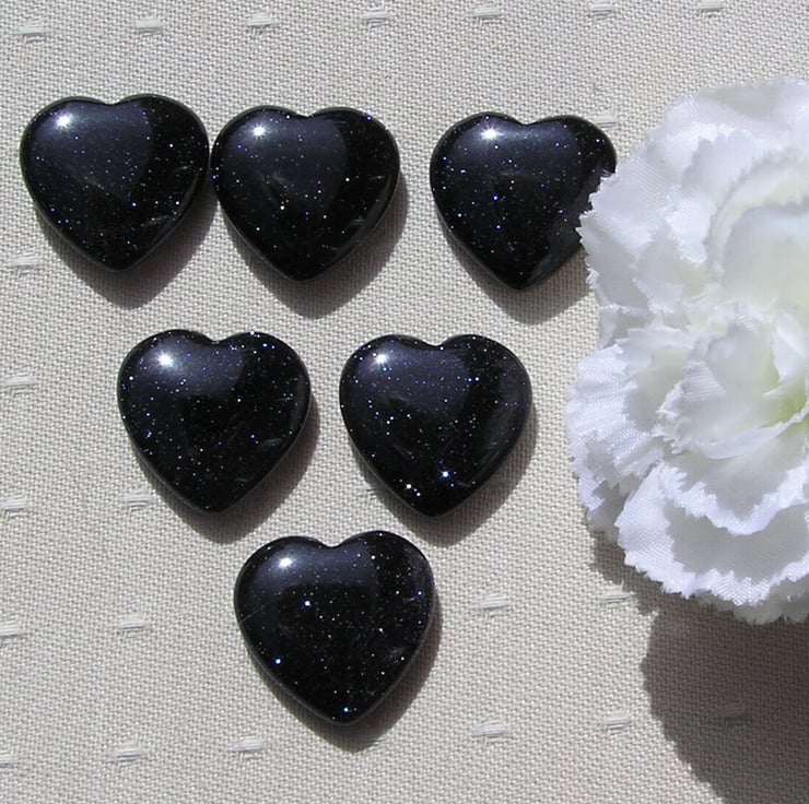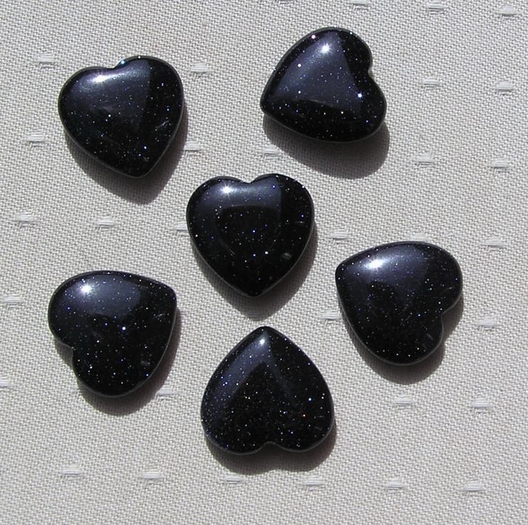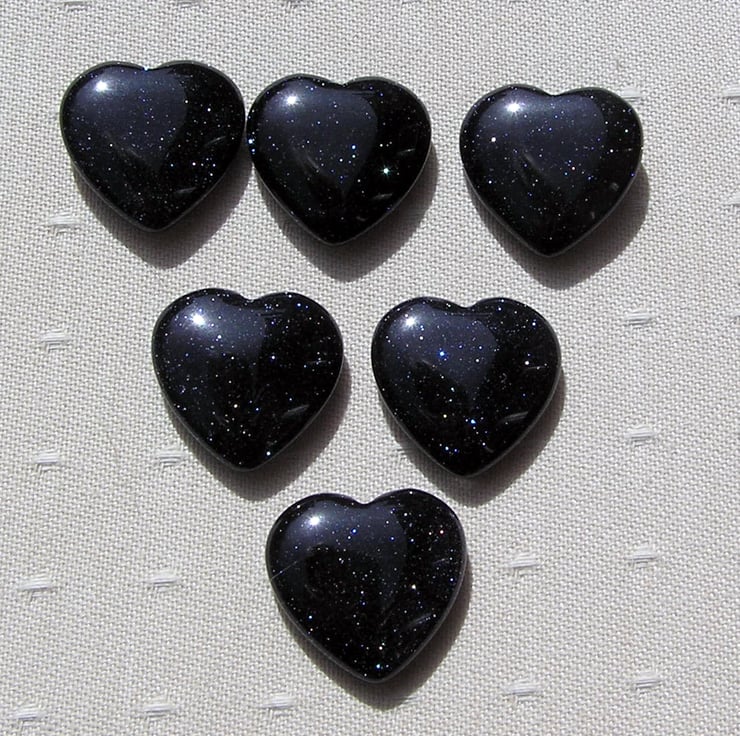 6 (Six) Beautiful Blue Goldstone (Sandstone) Solid Gemstone Crystal Hearts