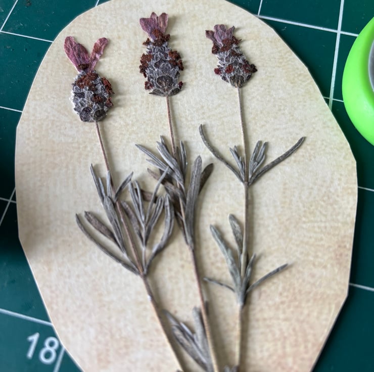 This is a one of a kind handcrafted art piece using pressed French lavender picked from my own garden, mounted on a vintage green metal frame