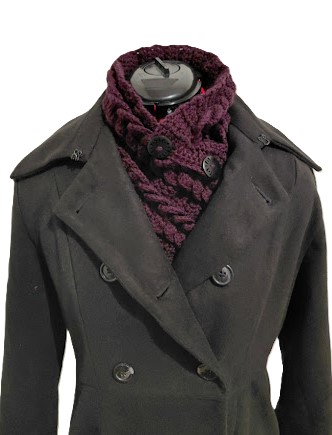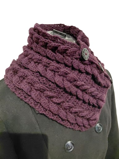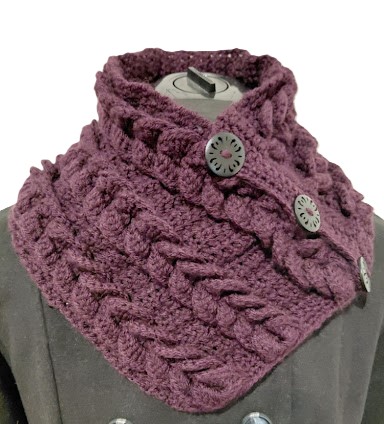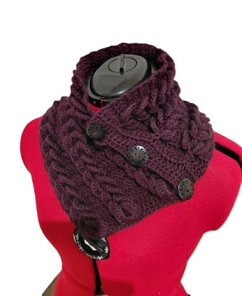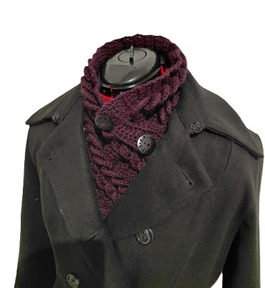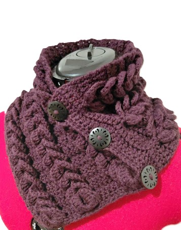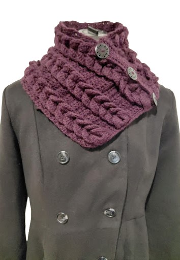 Crochet Neck Warmer. Scarf with Buttons. Luxurious Braided Winter Snood