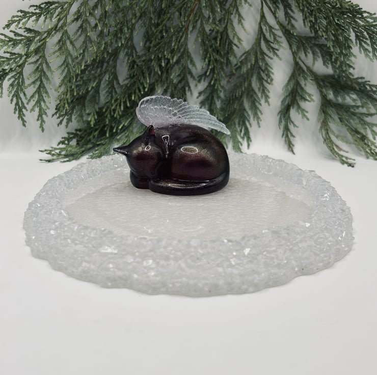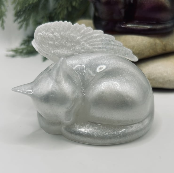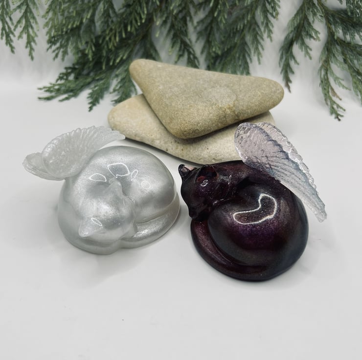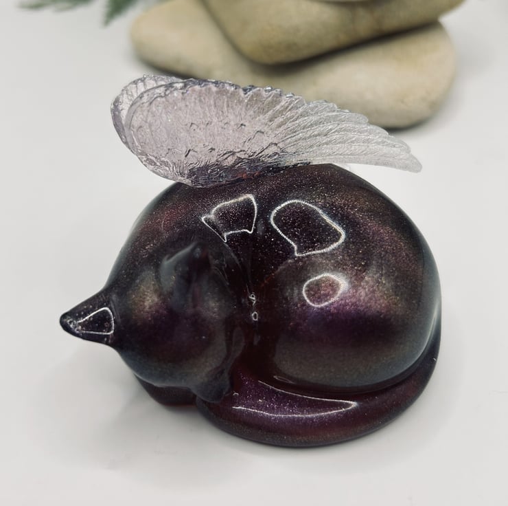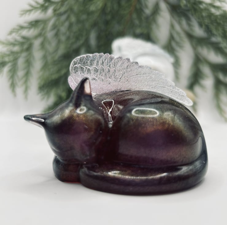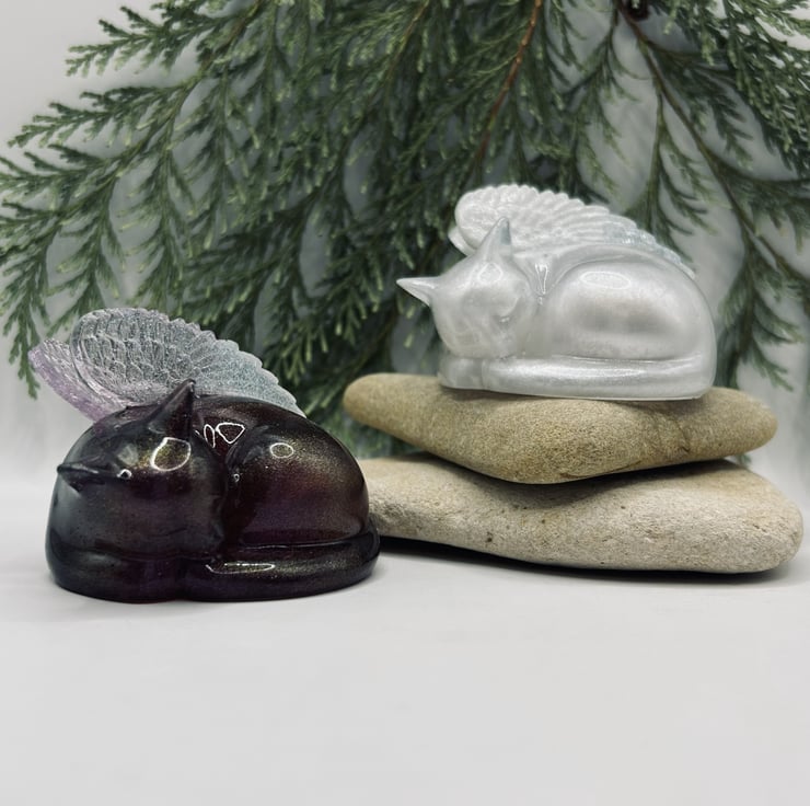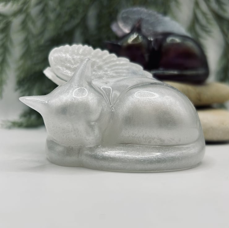 Angelis Felinus Resin Sleeping Cats with Glitter Wings, Memorial Ornament, Gift