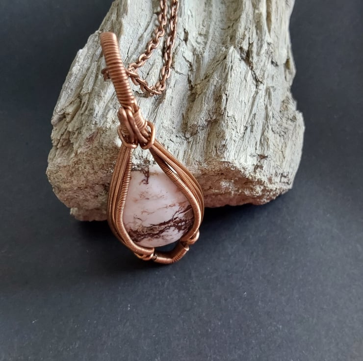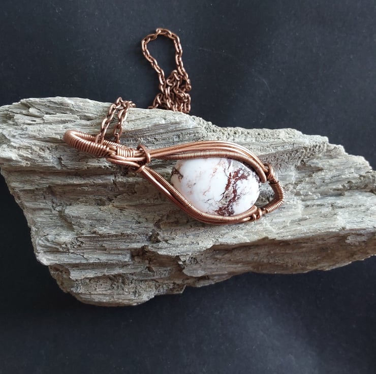 Copper wire wrapped Wild Horse Jasper pendant and chain