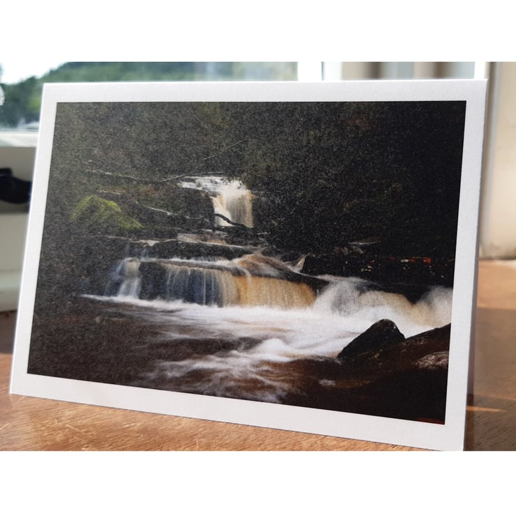An A6 greetings card of a waterfall on the Afon Caerfanell at the beautiful Blaen-y-glyn near Talybont in the central Brecon Beacons/Bannau Bryncheiniog