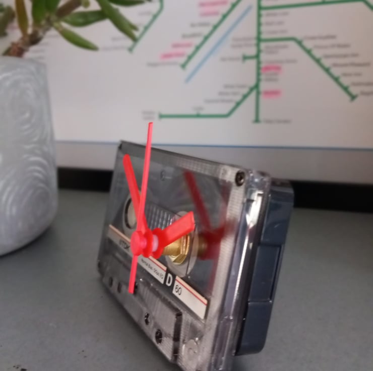 Upcycled desk clock made from 80s cassette tape, Vintage geek chic room decor