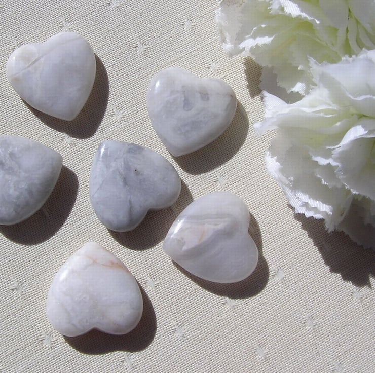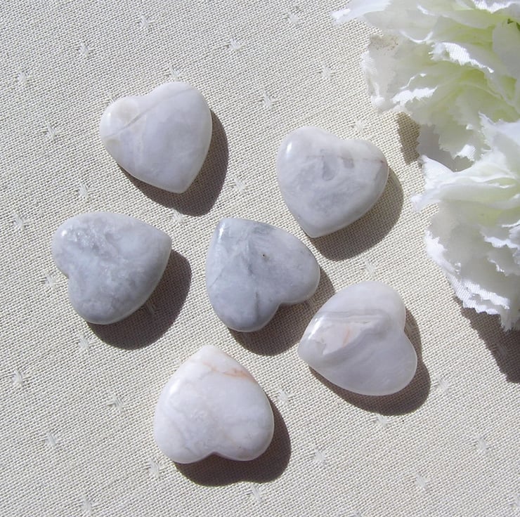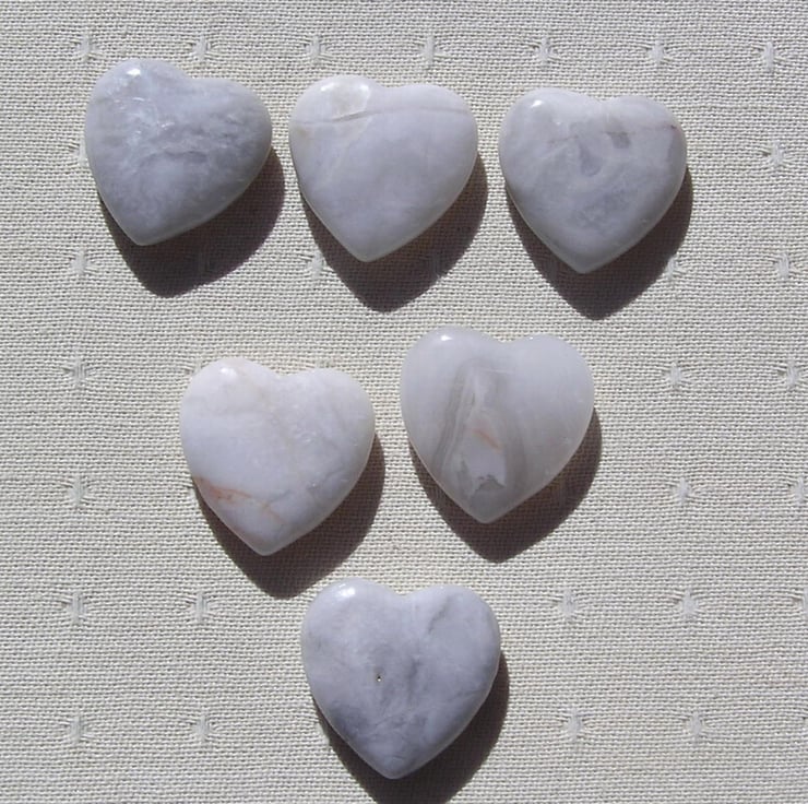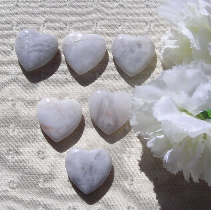 6 (Six) Beautiful Grey Phoenix Agate Solid Gemstone Crystal Hearts
