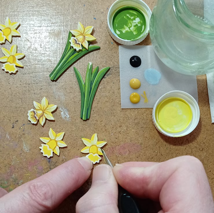 This handmade wooden daffodil brooch is created to bring a little brightness to any day. Each piece is carefully cut, shaped and painted by hand, with layers of vibrant yellow that echo the cheerful bloom so loved across Wales. Because every brooch is individually crafted, no two are ever quite the same, giving each one its own character and charm.