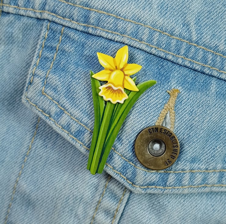 Daffodil Brooch, Handmade March Birth Flower Pin Badge