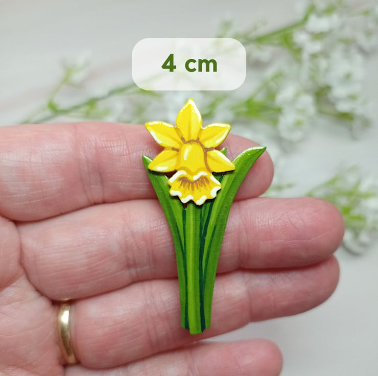 Handmade Wooden Daffodil Brooch – A Welsh Flower Keepsake for Spring and New Beginnings
