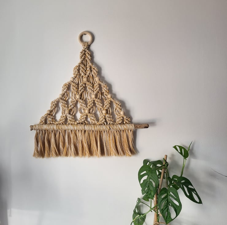 This beautiful christmas tree macrame can be bought as a gift , you can hang it on the wall to give your room christmas wibe .