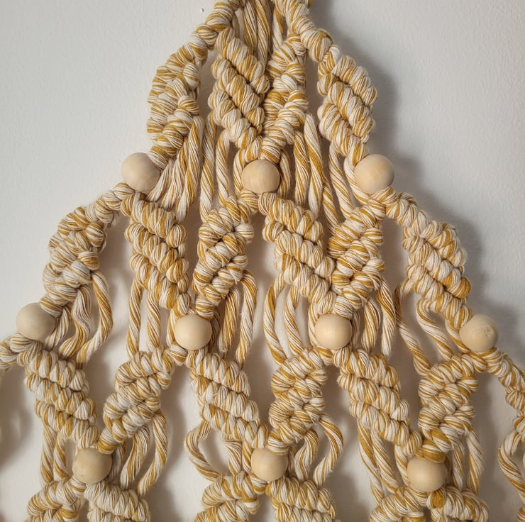 It's made with 5mm cord, to give boho look Ive added wooden beads.