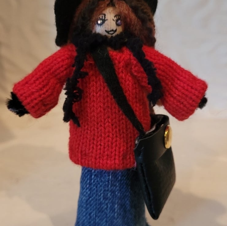 Hand made, unique free standing, hand crafted wooden pegs dolls, made in my own home with much love. These little dolls are quite a passion of mine, as I started making them when I was 13, and have recently just this year, started to create them again. I spend many hours trying to make them as perfect as possible, for optimum results ...to help bring you satisfaction and pleasure when you look at them. These handcrafted dolls are made with many different materials and accessories, which then are all hand stitched and glued.