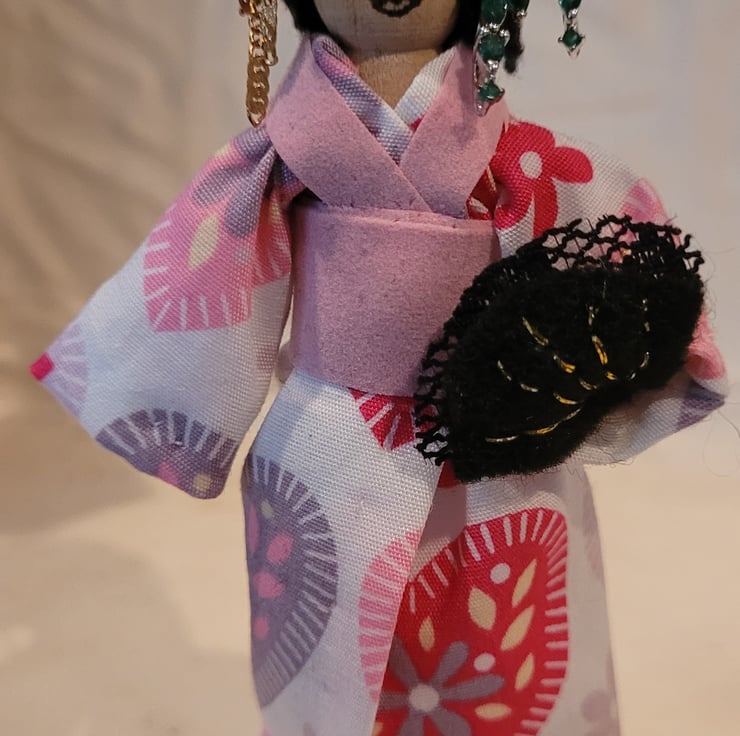 Hand made, unique,free standing, hand crafted wooden pegs dolls, made in my own home with much love. These little dolls are quite a passion of mine, as I started making them when I was 13, and have recently just this year, started to create them again. I spend many hours trying to make them as perfect as possible, for optimum results ...to help bring you satisfaction and pleasure when you look at them. These handcrafted dolls are made with many different materials and accessories, which then are all hand stitched and glued.