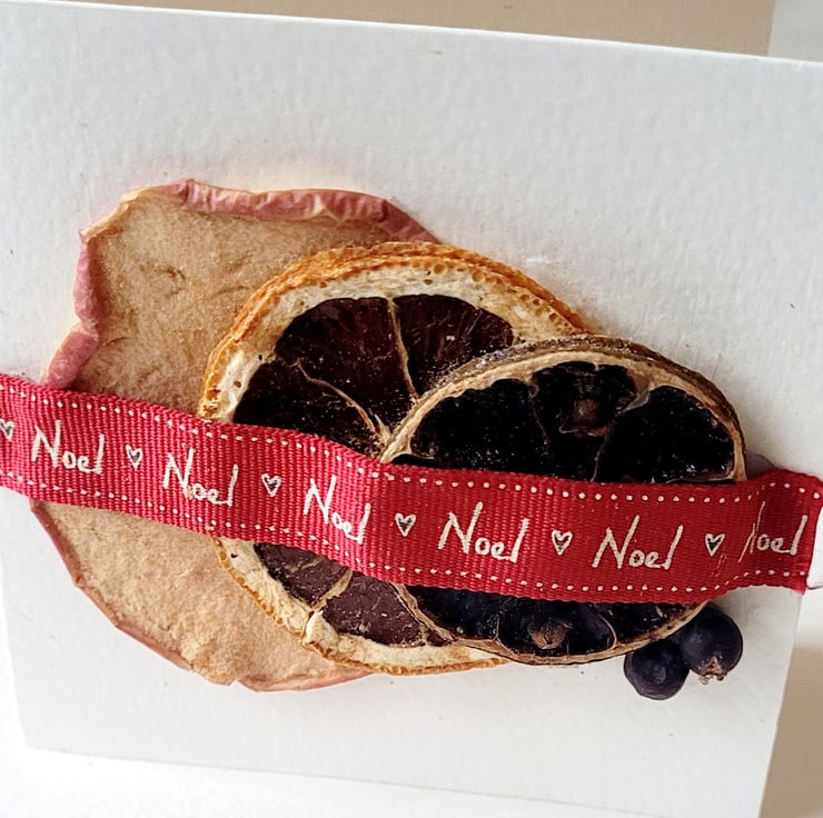 Handmade and uniquely individual, dried fruit and spices greeting card with a subtle scent.
