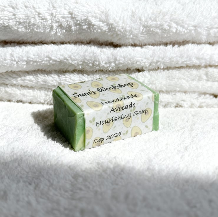 This Handmade Avocado Nourishing Soap is crafted with a balanced blend of plant oils selected for their cleansing performance and skin-friendly properties. The formula highlights cold-pressed avocado oil, valued for its hydrating and conditioning effects. In soap, avocado oil contributes to a creamy lather that gently lifts impurities while helping the skin retain moisture, making it suitable for sensitive or easily irritated skin.