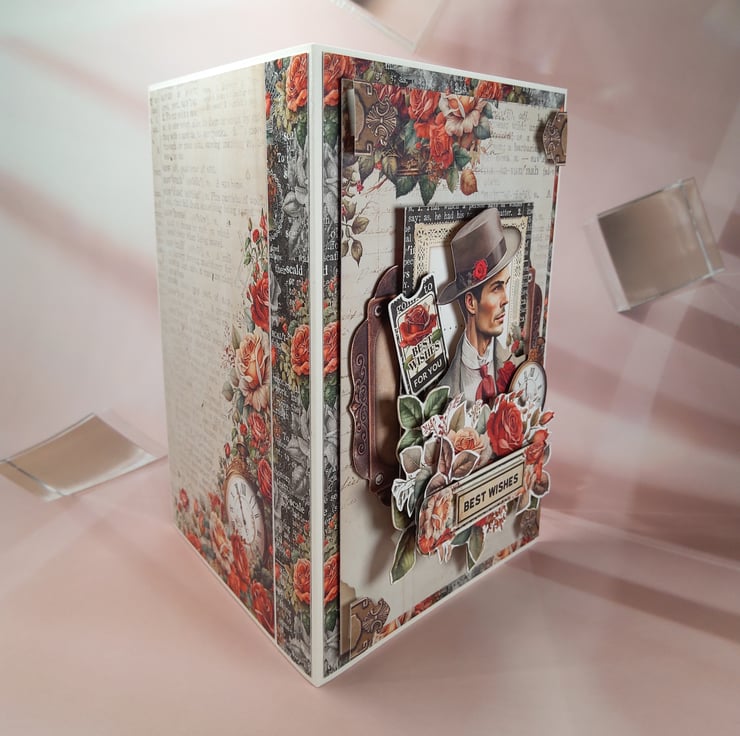 This design was inspired by the elegance of classic gentleman style combined with rich botanical elements and antique textures. The warm colours, old-time frames and romantic florals created a timeless vintage atmosphere that I wanted to express in a layered, expressive composition.