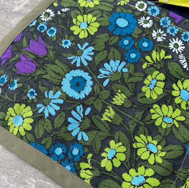Garden apron Daisy Chain vintage fabric and denim with pockets