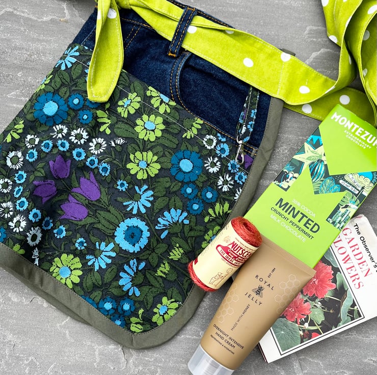 This apron is handy in the garden or working around the house. It also makes a good stallholder apron to keep money, phone etc handy. Fill it with treats for a special gift for a gardener.