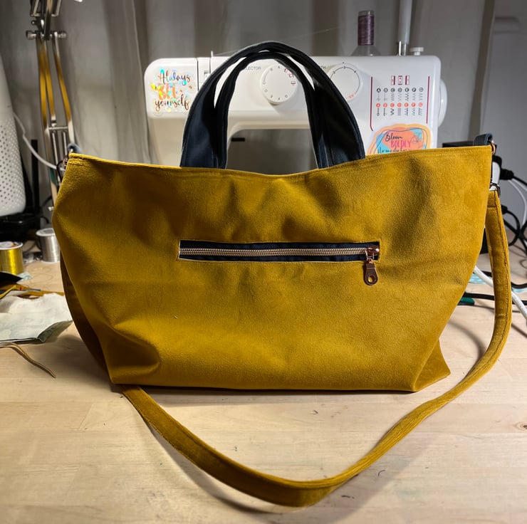 Lovingly made from an anti-landfill haul - this generous mustard velvet bag can be used in whatever way suits - cute hand bag - but also with a removable crossbody strap.