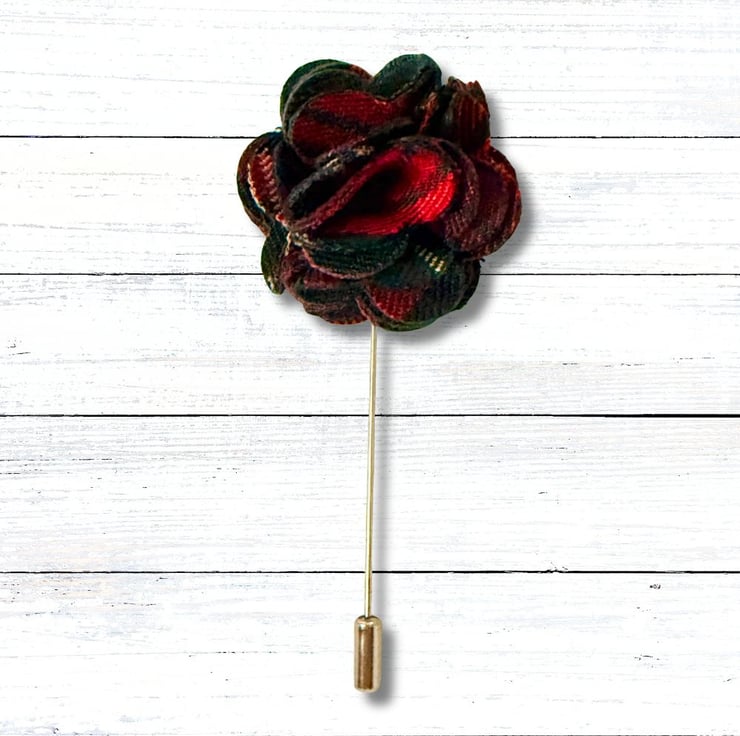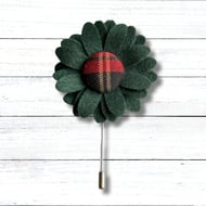 Tartan Flower Lapel Pin, Buttonhole, Christmas gift