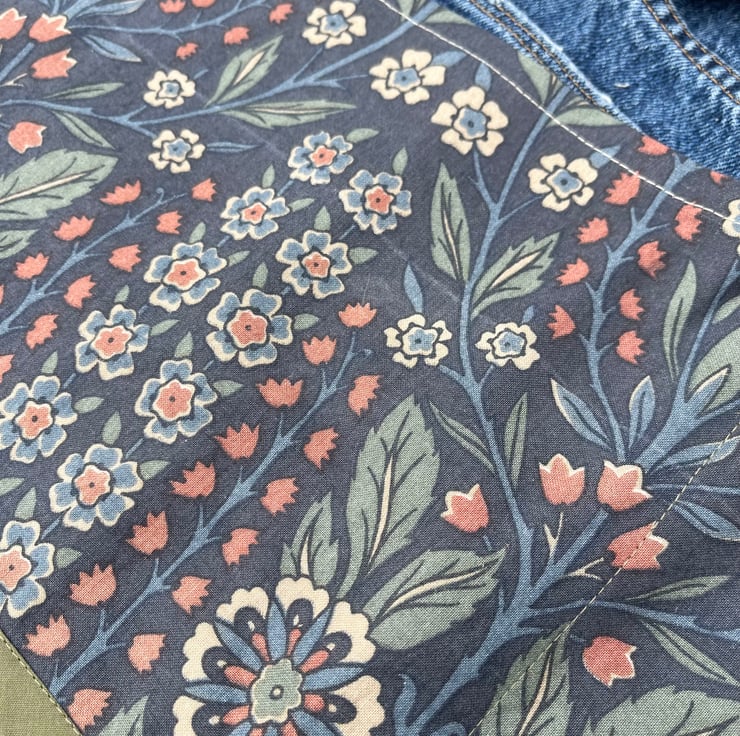 The reclaimed Liberty cotton is slightly faded from its previous use as a curtain but still very pretty.
