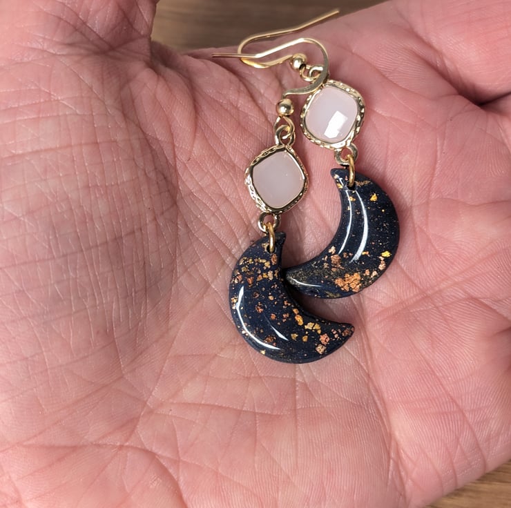 Hand made polymer clay earrings with an abstract pattern coated in resin with a and gold embellishment. Fixing is hypo allergenic. Please see all photos for close up detail. All products handmade therefore there may be minor imperfections. Each pair sold as seen, message for more info