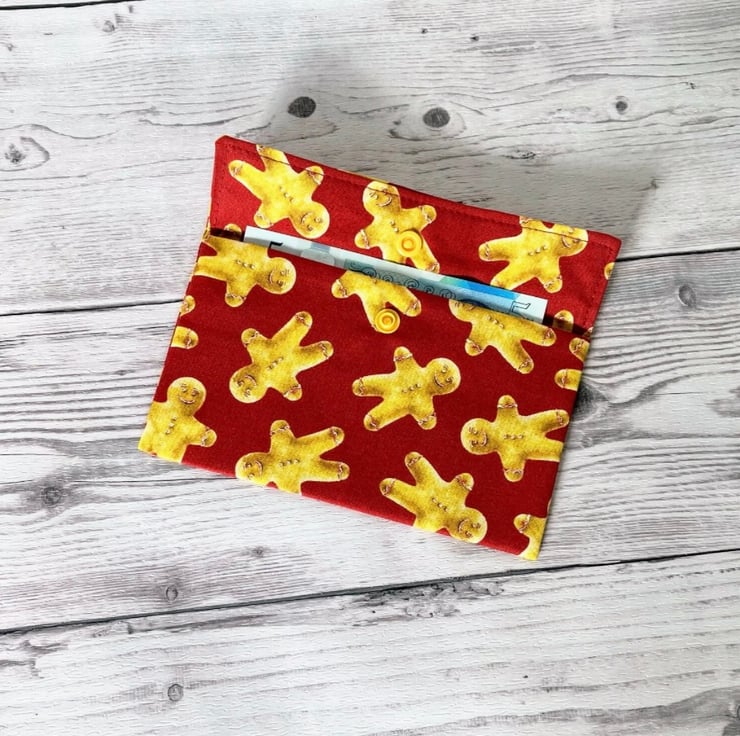 Red Gingerbread Men Cotton Fabric Money Wallet: Bank Note Gift Pouch.