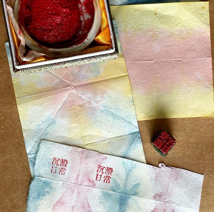 -Wrapped in Japanese washi paper naturally dyed in soft botanical colours