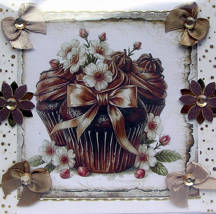 Chocolate Toffee Cupcake - Hand Crafted Decoupage Greeting Card - Blank 2899