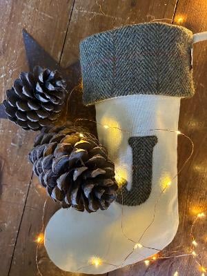 Luxury Harris Tweed Christmas Stocking – Personalised Initial – Handmade in Somerset.