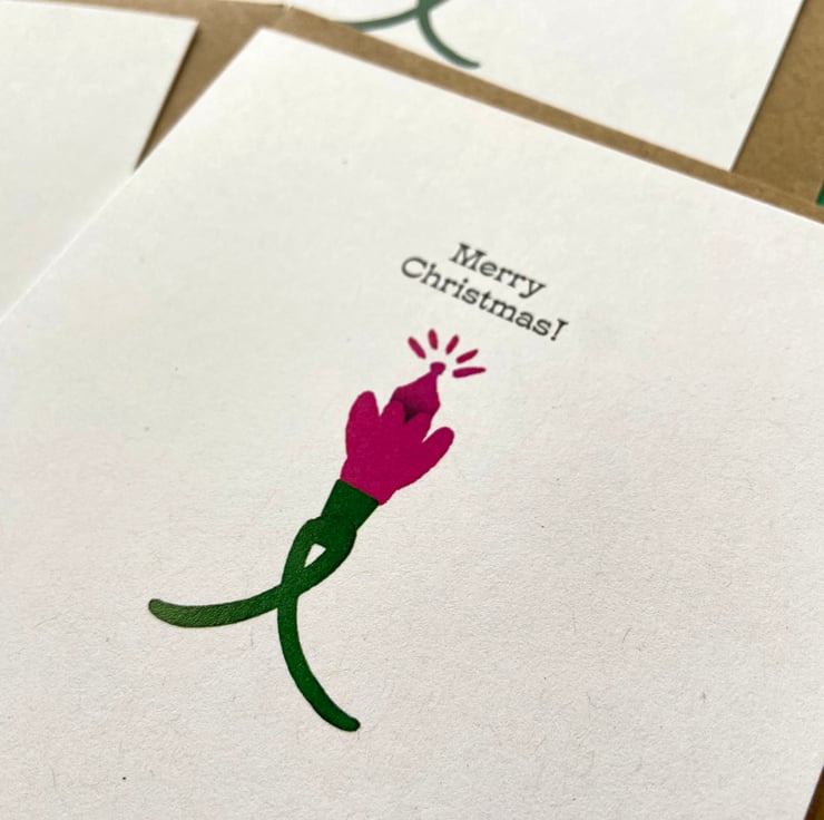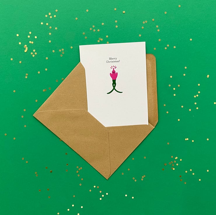 Printed in Glasgow on 300gsm 100% recycled card stock, and comes with C6 kraft envelopes. Cards are shipped in a brown paper bag – no plastic!