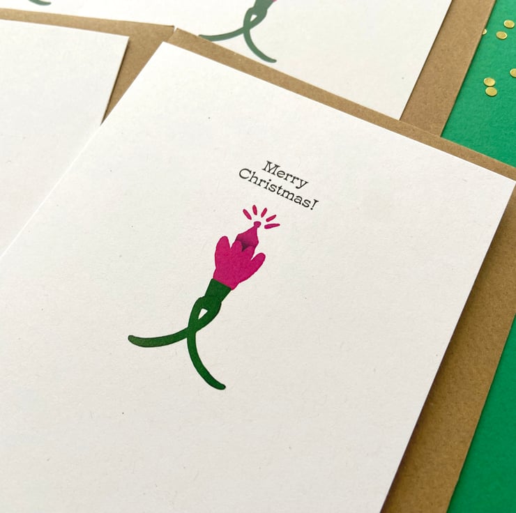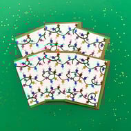 Those colourful 90s Christmas tree fairy lights were my FAVOURITE part of decorating the tree as a kid! I loved the Quality Street style colours and the little shades. They were the inspiration for the entire range of cards!