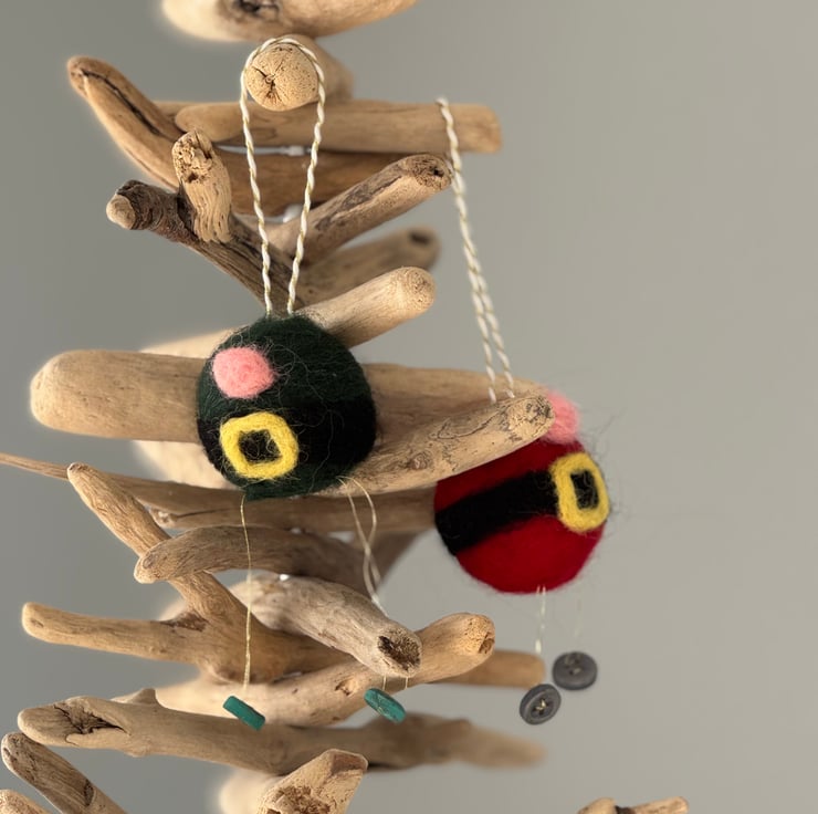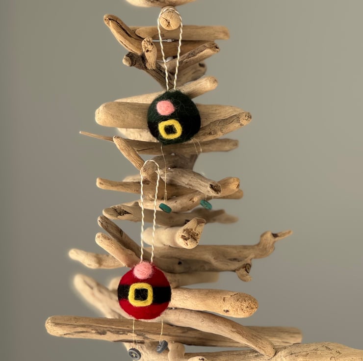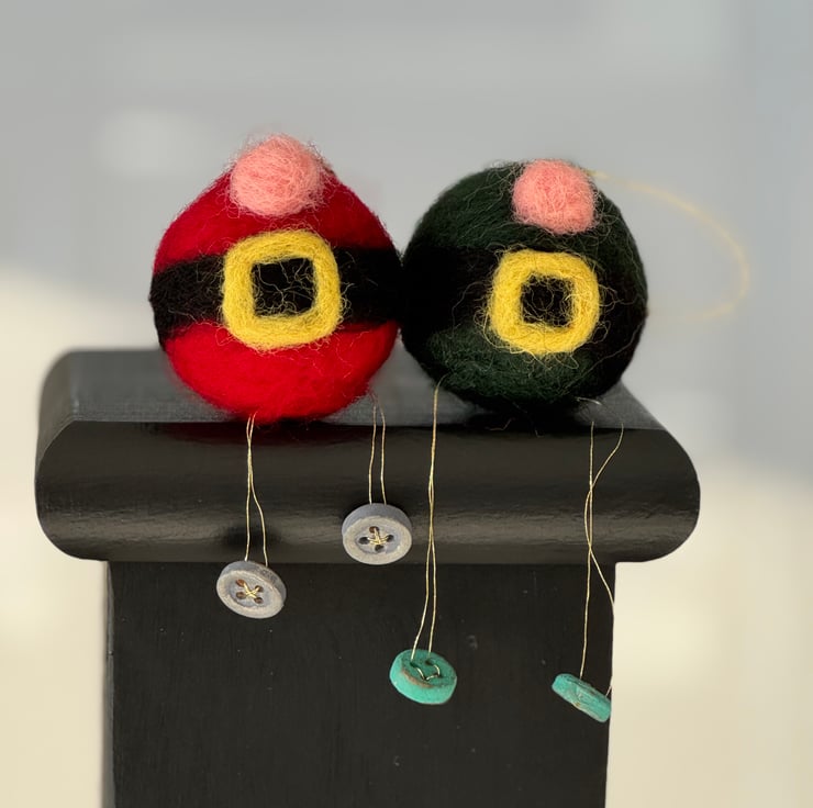 This adorable pair of Christmas baubles are hand felted by me to bring some fun to your Christmas decor.