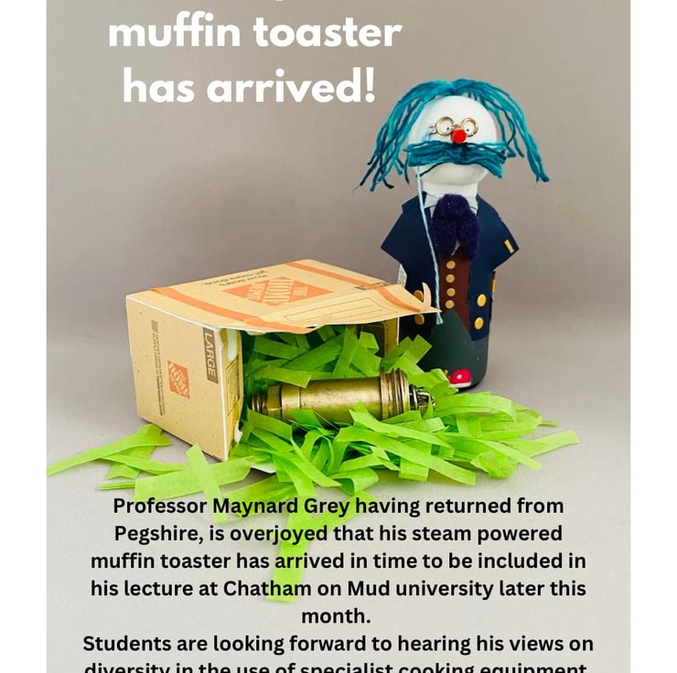 Besides being an inventor of items he believes the world is desperately short of, such as the ‘steam powered muffin toaster’, Professor Maynard Grey, is proud to be the President of the Little Nutting Eccentric society. His passion though, is collecting ‘Do not disturb’ signs.