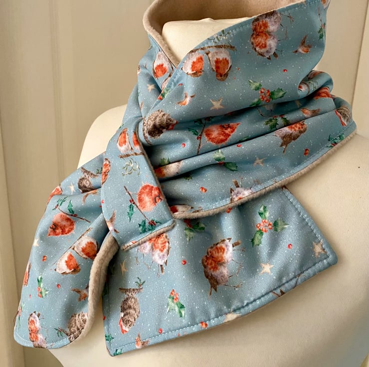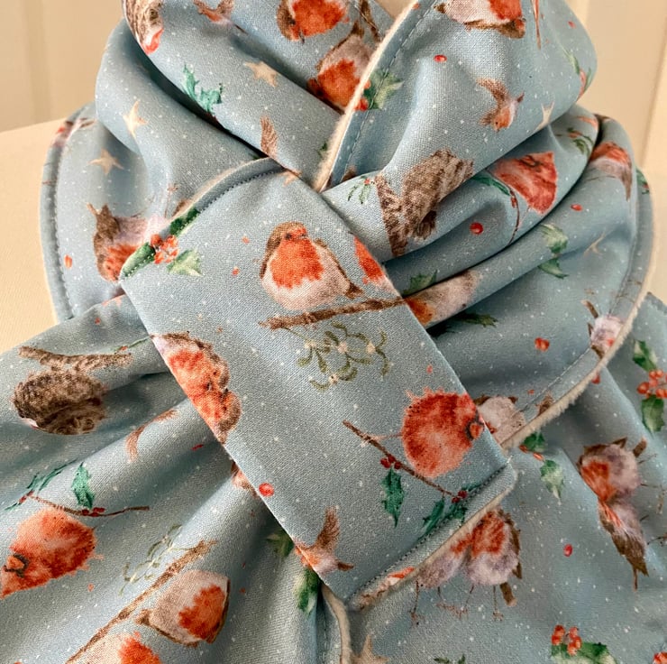 I’ve created this lovely fleece lined neck warmer scarf using a gorgeous 100% cotton print fabric by Wrendale and lined it with a soft warm fleece which compliments the colour of the outer. These are the perfect alternative to traditional scarfs as they are much less bulky but still provide the warmth.