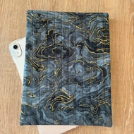 The pouch is made from this lovely William Morris Willow Bough print on a black background. The pouch is quilted with black stitching and has a black zip. The pouch is fully lined with black water resistant ripstop fabric.