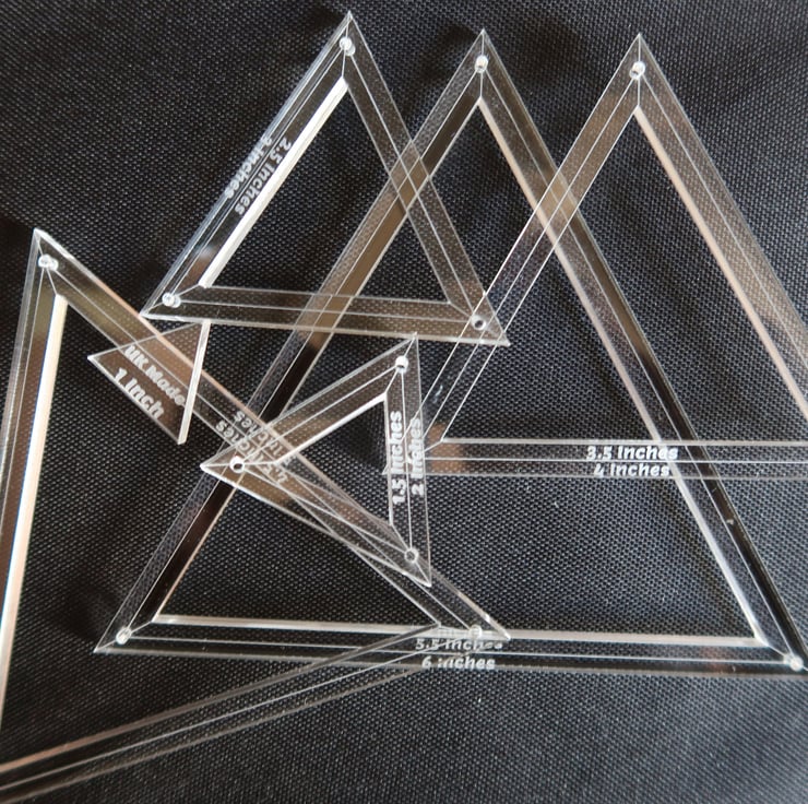5 interlocking triangular templates ranging from 6 inches to 1 inch.