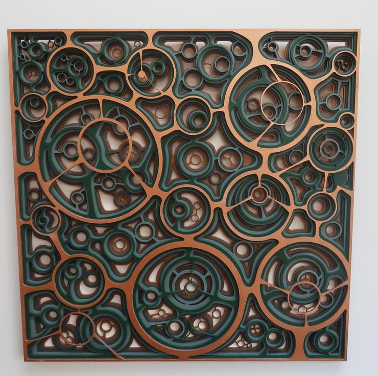 This multilayered, laser-cut wall art based on circles features an intricate design composed of multiple concentric and overlapping circular shapes, with open areas in the back , so, whatever your colour scheme , it will become part of the piece.