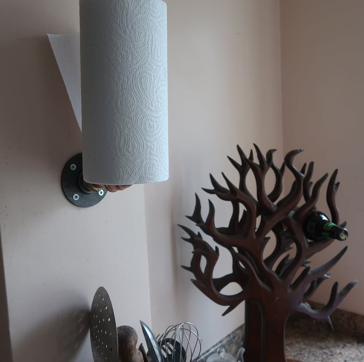 Add a bit of originallity and style to your kitchen with this hand made Kitchen roll holder, steam punk, industrial, lightly polished and sealed with clear lacquer.