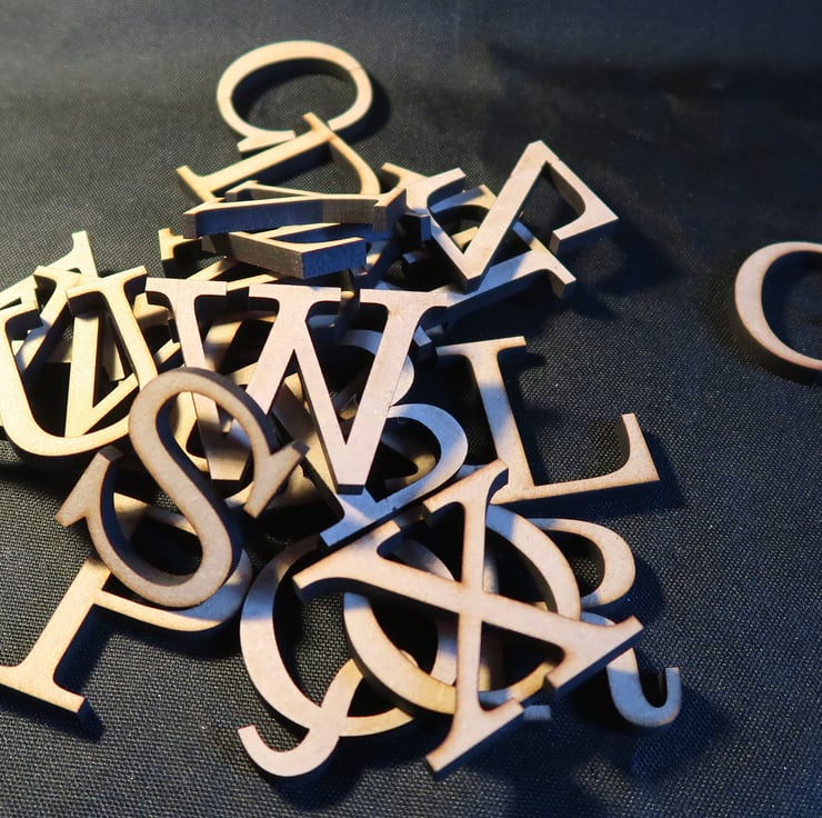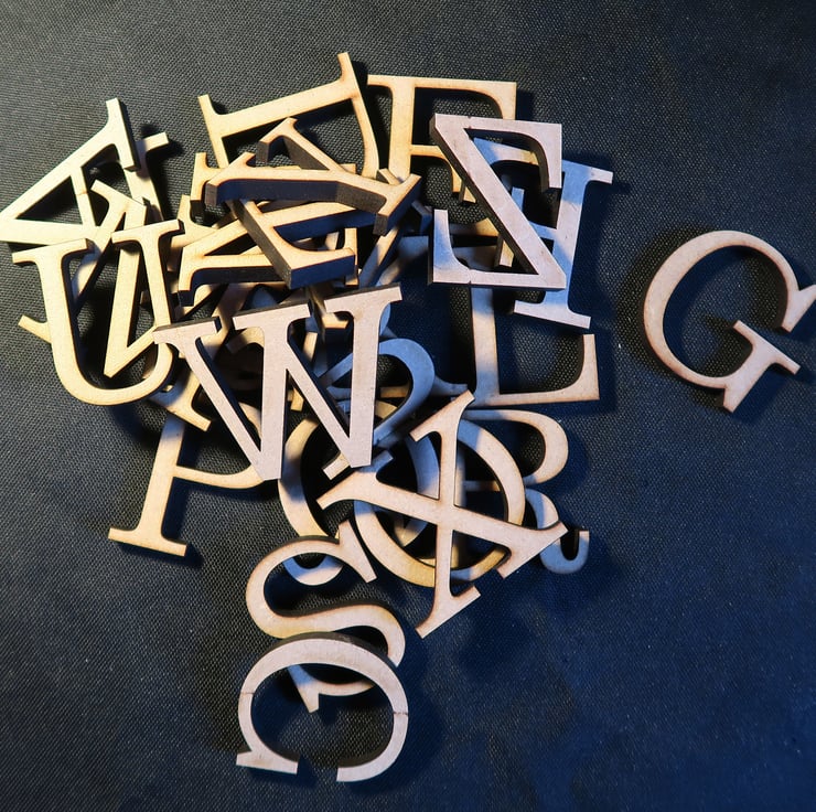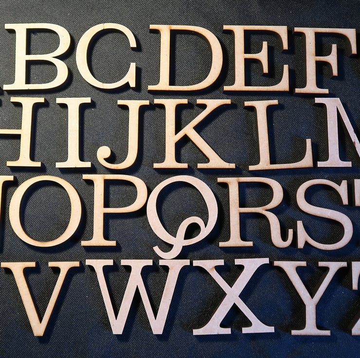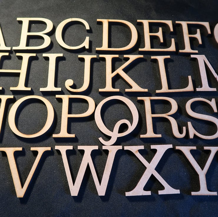 Chunky 6mm thick, laser cut, MDF letters and numbers ,in, in case you need to know, 'Clarendon' font.