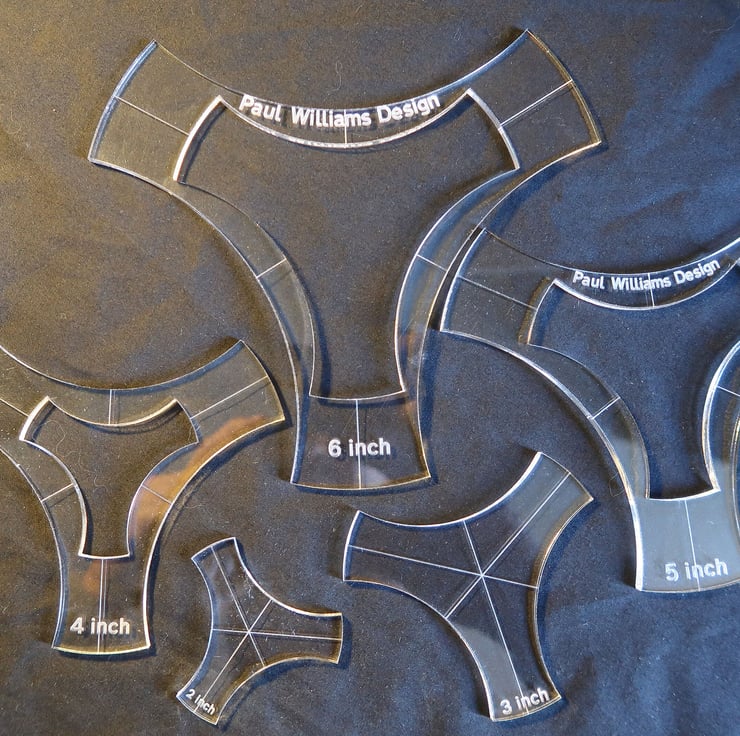 Y knot template set, ruler, quilting, English paper piecing, 6 inches to 1 inch,