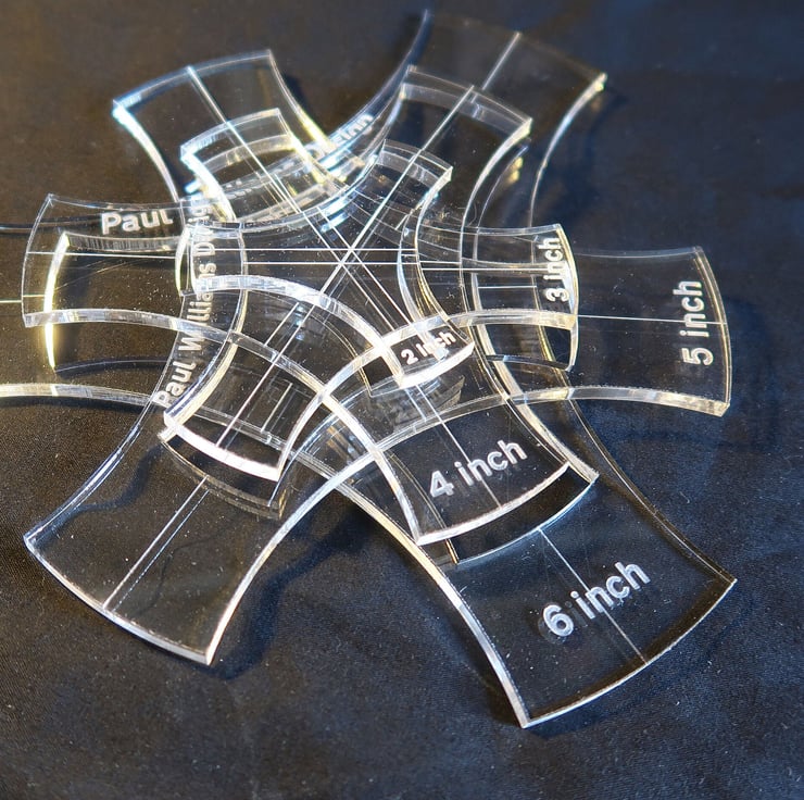 5 interlocking templates sizes graded from 6 inches down to 1 inch. 6 templates in