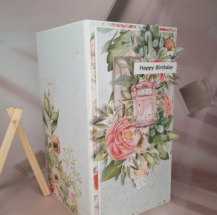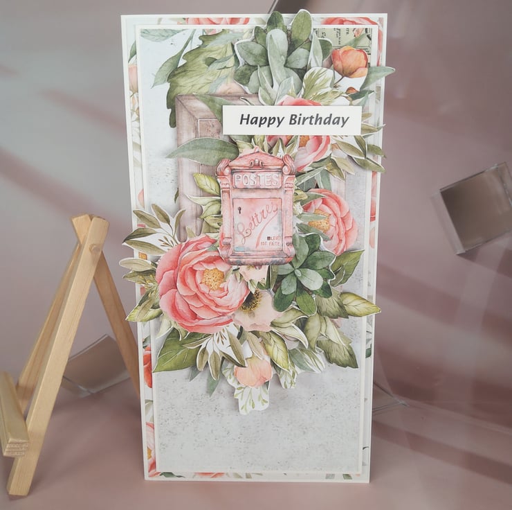 This card was inspired by vintage French charm — blooming garden roses, soft greenery, and the nostalgic look of old postboxes. A combination of elegance, romance and classic feminine beauty.