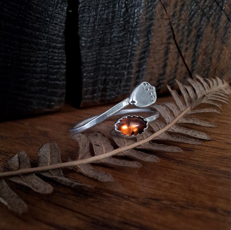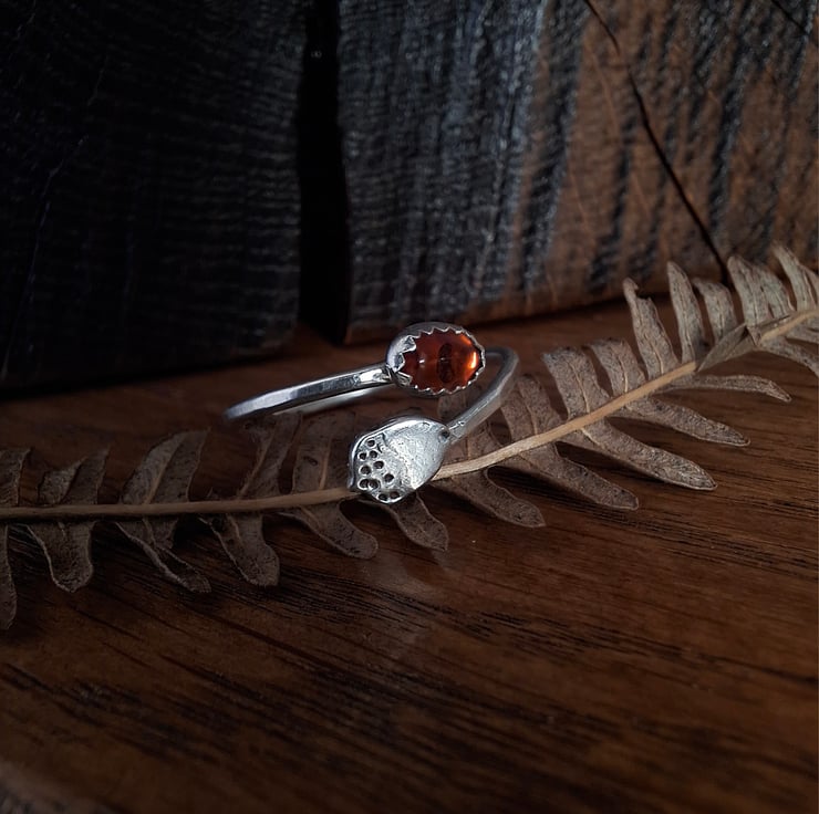 The oak is one of my favourite trees. Grounding, strong and enduring, the oak is woven into our natural and cultural history unlike any other. A different take on the oak tree, this dainty adjustable ring has a small acorn charm and a matching warm glowing amber stone.