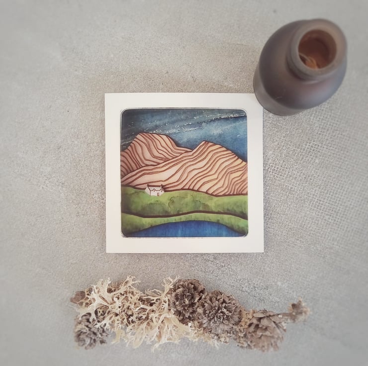This card features a photograph of one of my miniature framed dioramas, which are inspired by places and scenes from around Scotland.