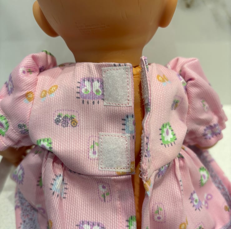The dress is closed at the back with Velcro tabs