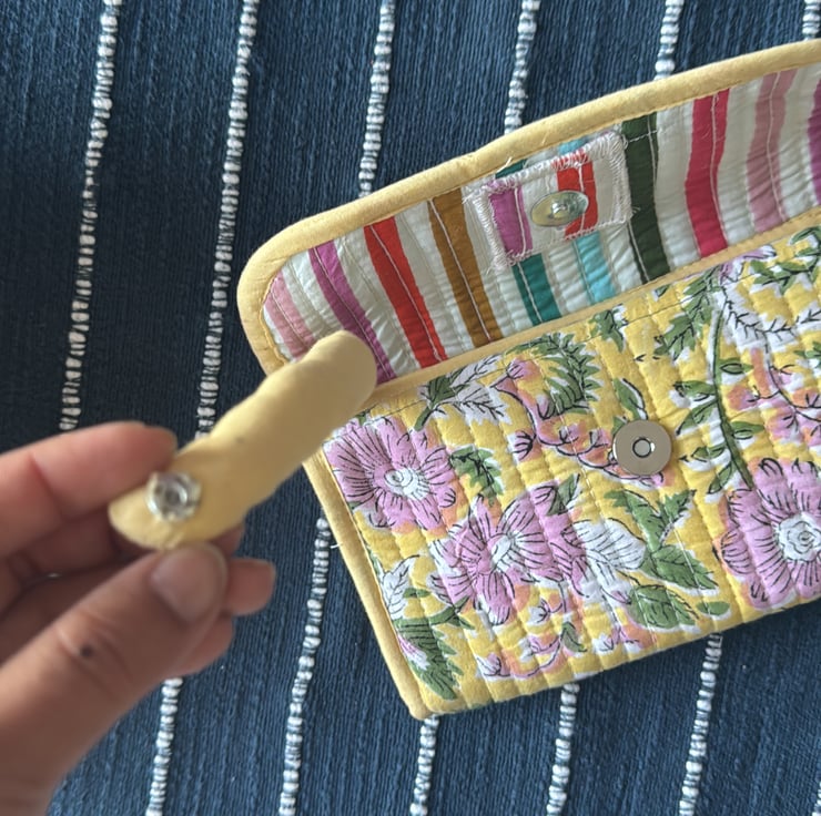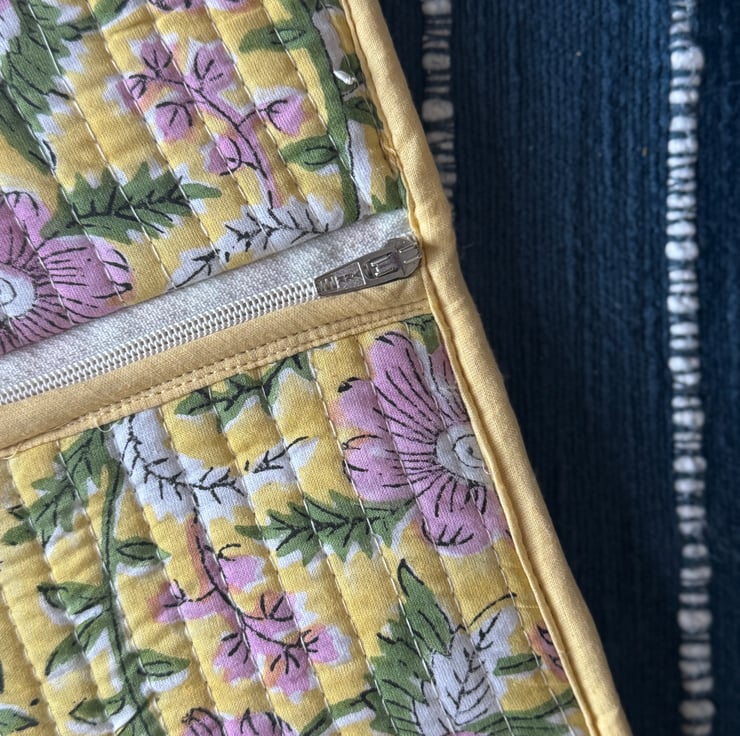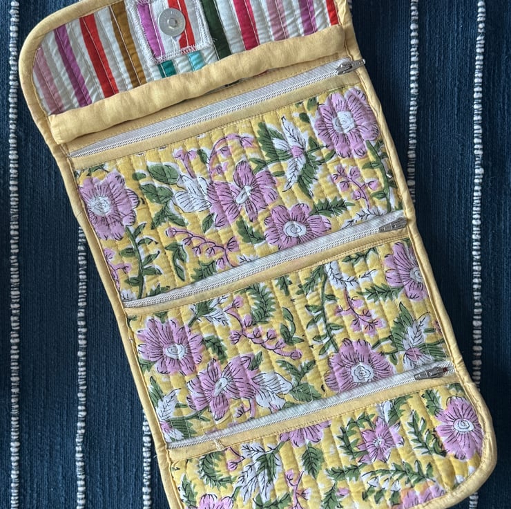 100% Cotton Indian Print Quilted Toiletry Roll Up Pouch: Travel Makeup Kit