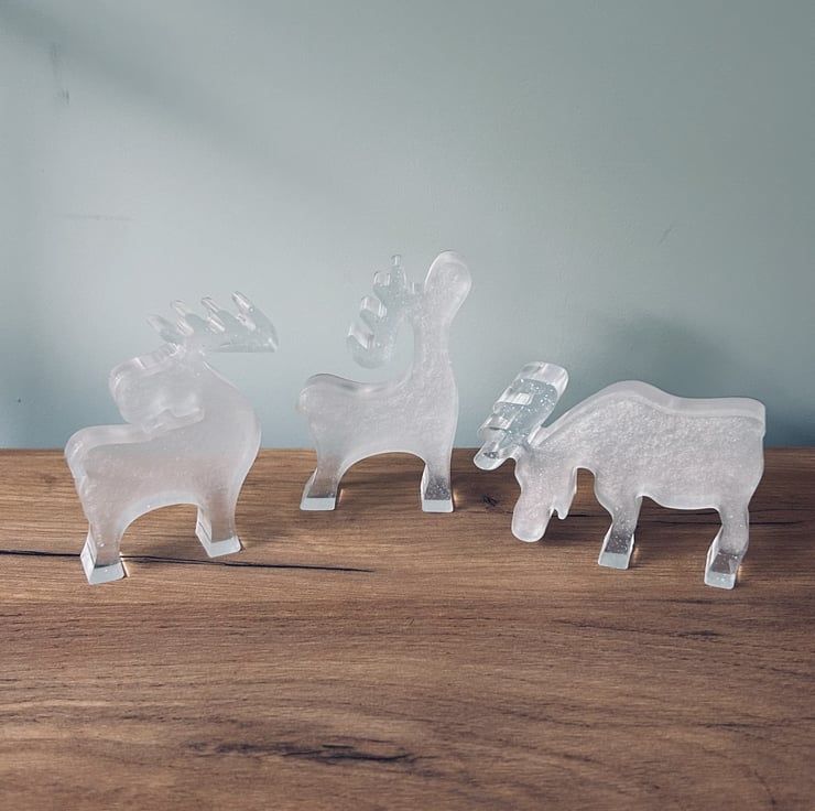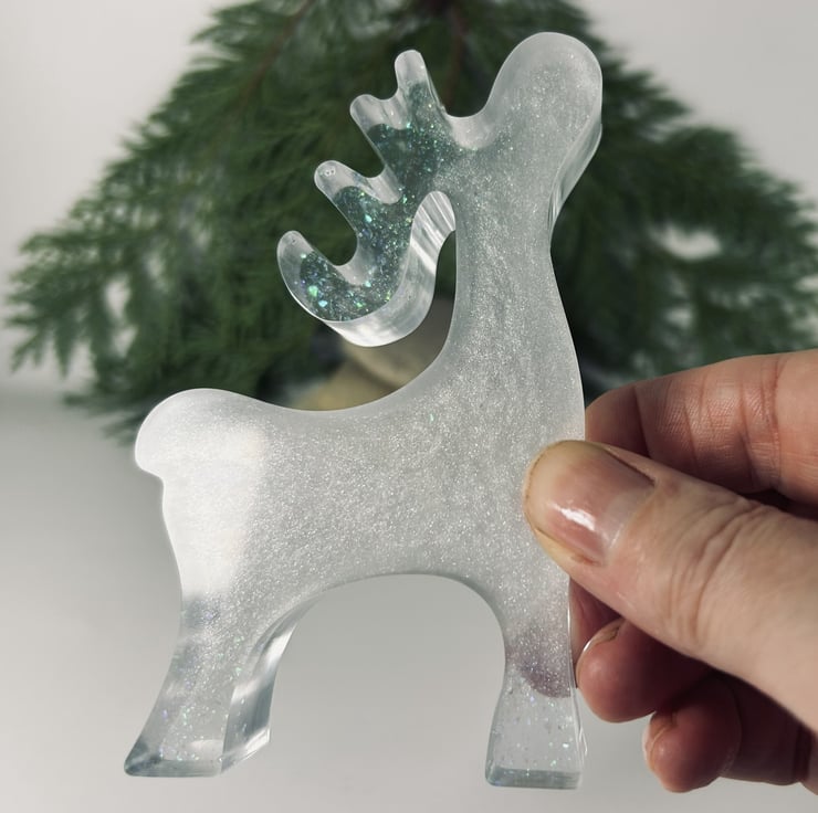 Understated and handmade, these elegant resin reindeer are perfect for standing at the base of your Christmas tree or displayed around your home. Their unique design makes them striking statement pieces, especially as part of festive table decorations and thoughtful gifts for loved ones, collectors or those drawn to ethereal beauty.