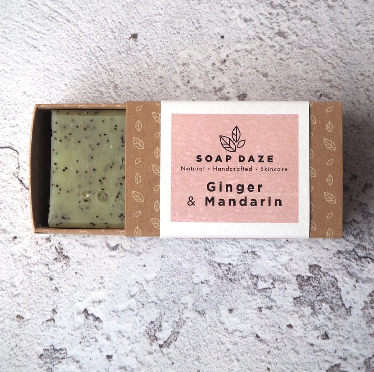 A fruity & warming soap! With Ginger and Mandarin essential oils and poppy seeds for a little gentle exfoliation.