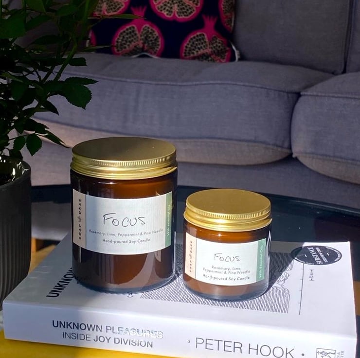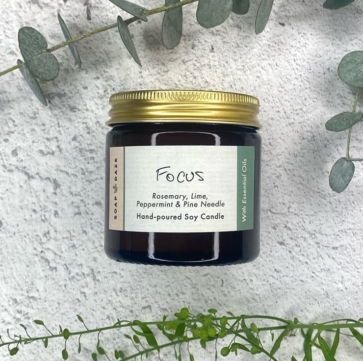 Focus - soy wax candle with Rosemary, Lime, Peppermint and Pine Needle essential oils.