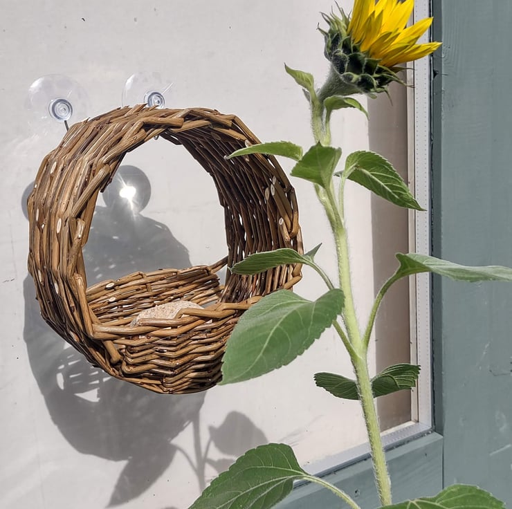 These bird feeders are made in willow called Salix Black Maul which offers a subtle range of soft browns which blends beautifully with a garden setting. Fixing them to a window means that even when you're unable to get outside or all snaffling your cornflakes before school, a cheeky Robin or a squabble of blue tits might visit and give you a mood boost.