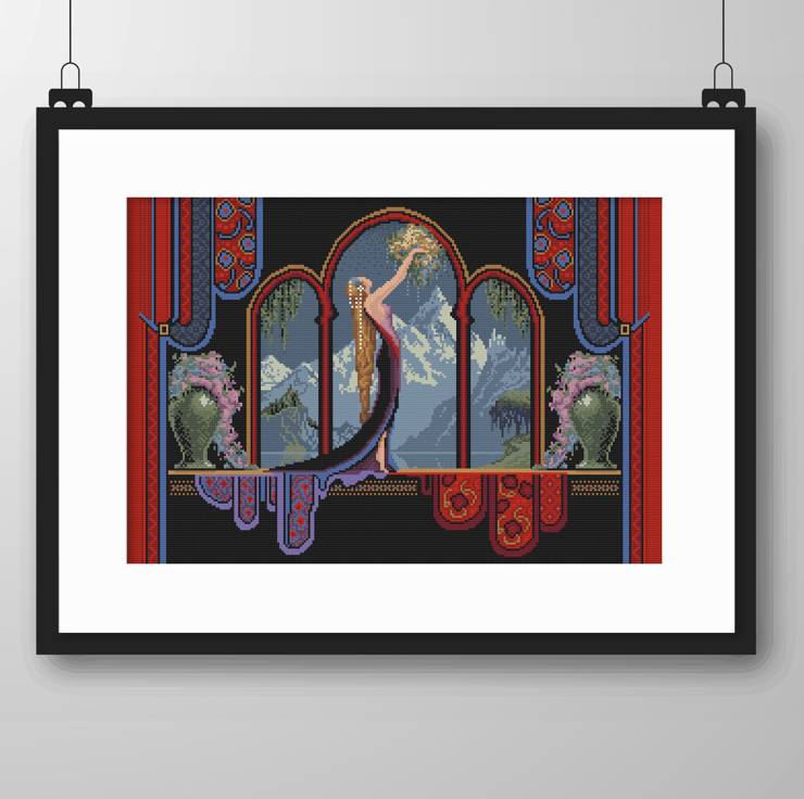 243 - Art Deco Lady Cross Stitch Pattern: Goddess of the Mountains (PDF Chart)